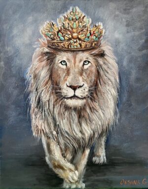 # 113. Weisser Löwe. 41×33. Acryl. Leinwand. Mischtechnik. Sold.