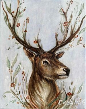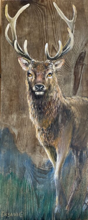 # 124. Rothirsch. Weidenkönig. 30×24. Acryl. Leinwand.