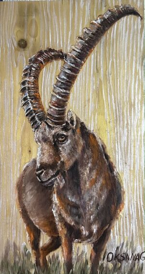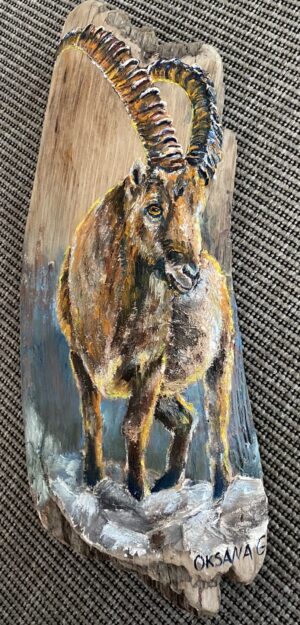 # 116. Steinbock. 39×14.Acryl. Öl. Treibholz