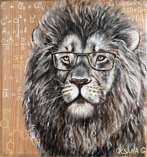 # 137. Der Löwe. 61×59. Acryl. Öl. Altholz. Mischtechnik. Sold