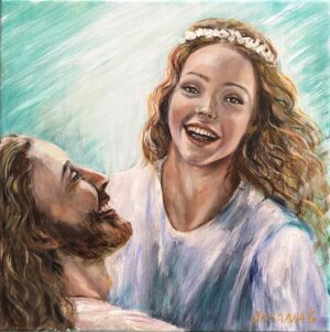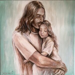 # 139. Jesus und Kind. 40×40. Öl. Leinwand. Sold