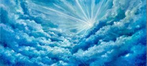 # 196 In Seiner Gegenwart. 130 x60. Acryl, Öl. Holzplatte. Sold