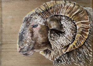 #80 Der Widder 43×61. Öl. Acryl. Holz. Sold