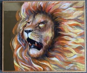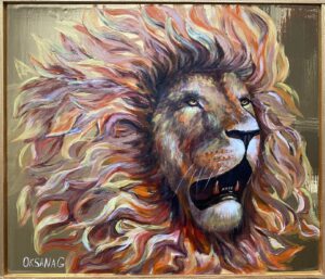 # 95. Der Löwe, der uns stärkt. 45 x 39. Acryl. Goldfolie. Sold